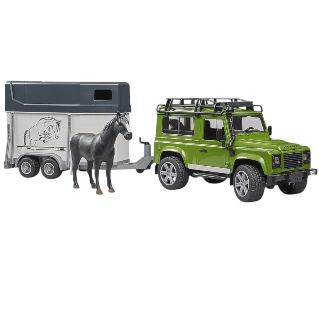 גיפ לנד רובר + עגלה עם סוס BRUDER