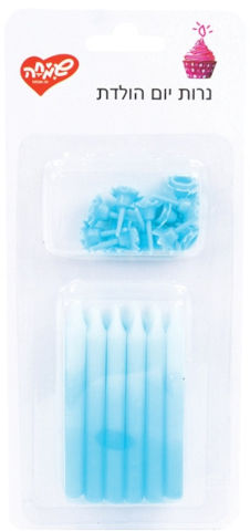 12 נרות ג'מבו תכלת + 12 מעמדים