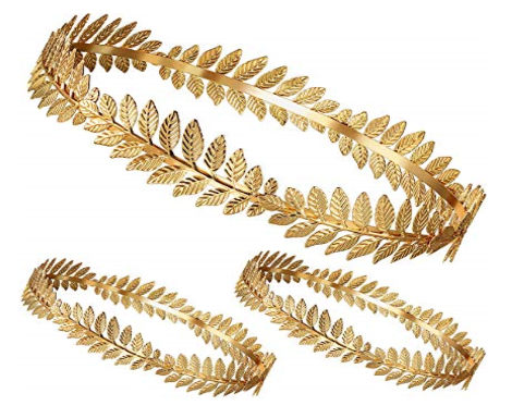 כתר עלים וזוג סיכות עלים לשיער ליווני על כארד