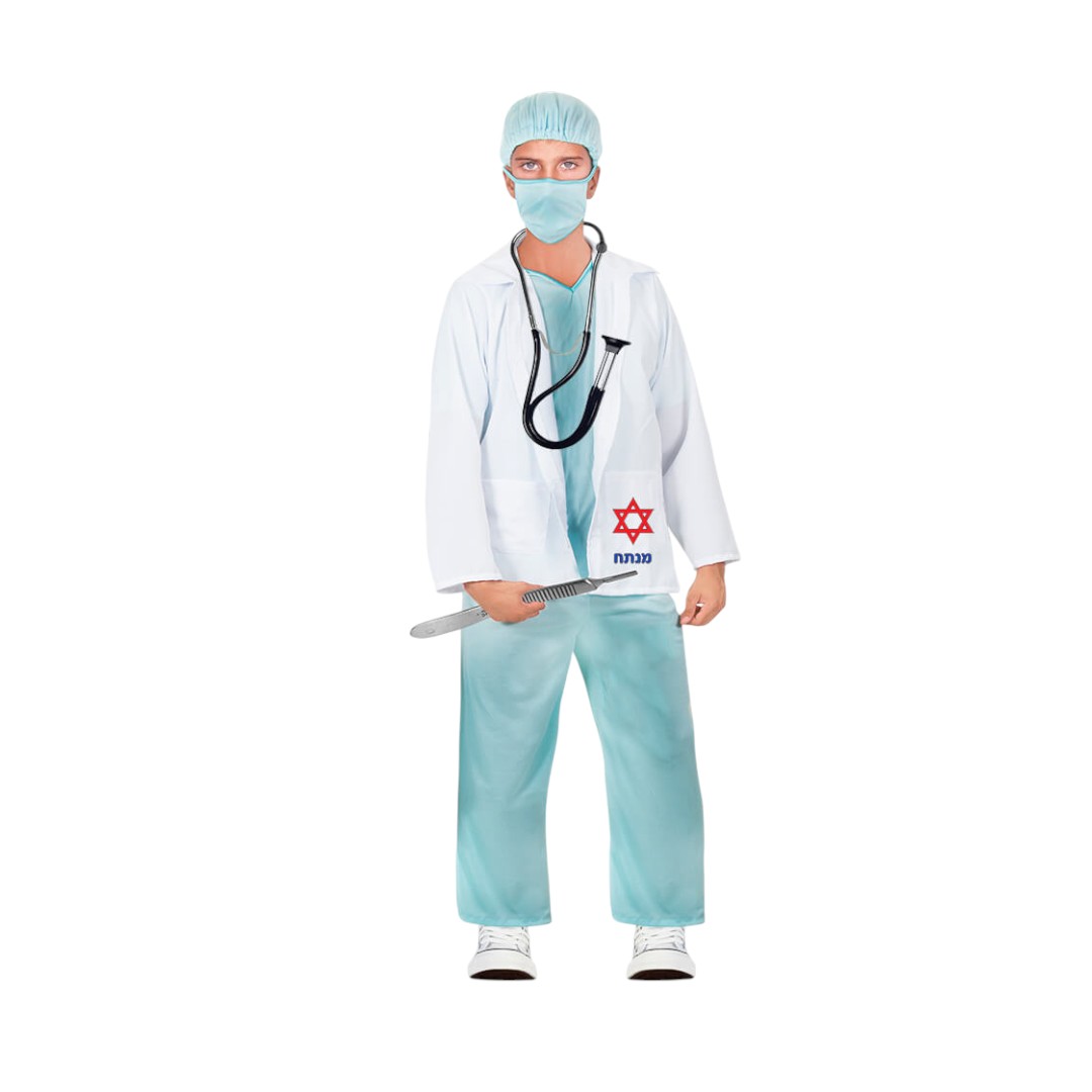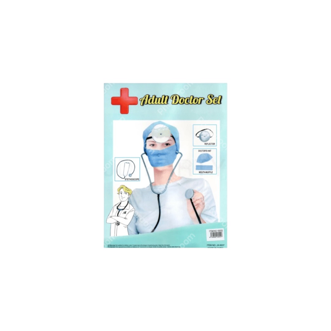 סט רופא מנתח 4 חלקים כולל כובע, מסכה, ראי וסטטוסקופ בשקית PVC עם כארד