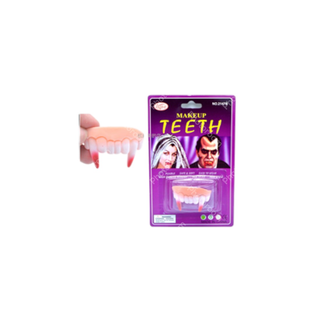 שיניים לערפד עם ניבים דם ארוכים עם דם על כארד