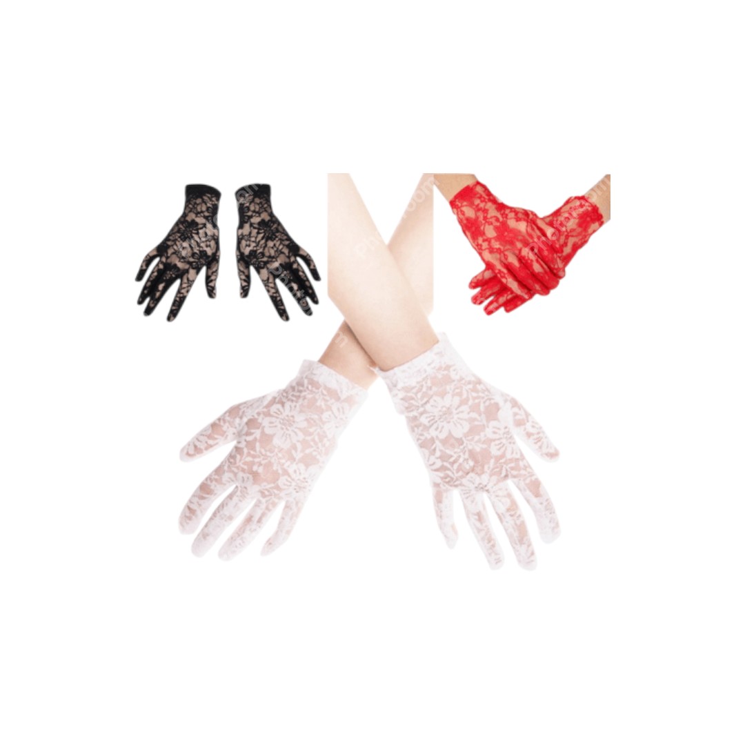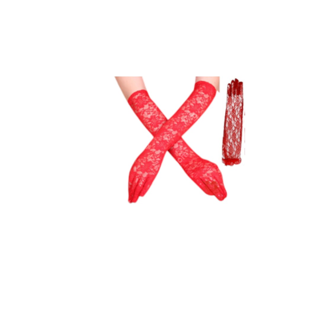 זוג כפפות תחרה ארוך שחור 38 ס"מ בשקית PVC עם כארד
