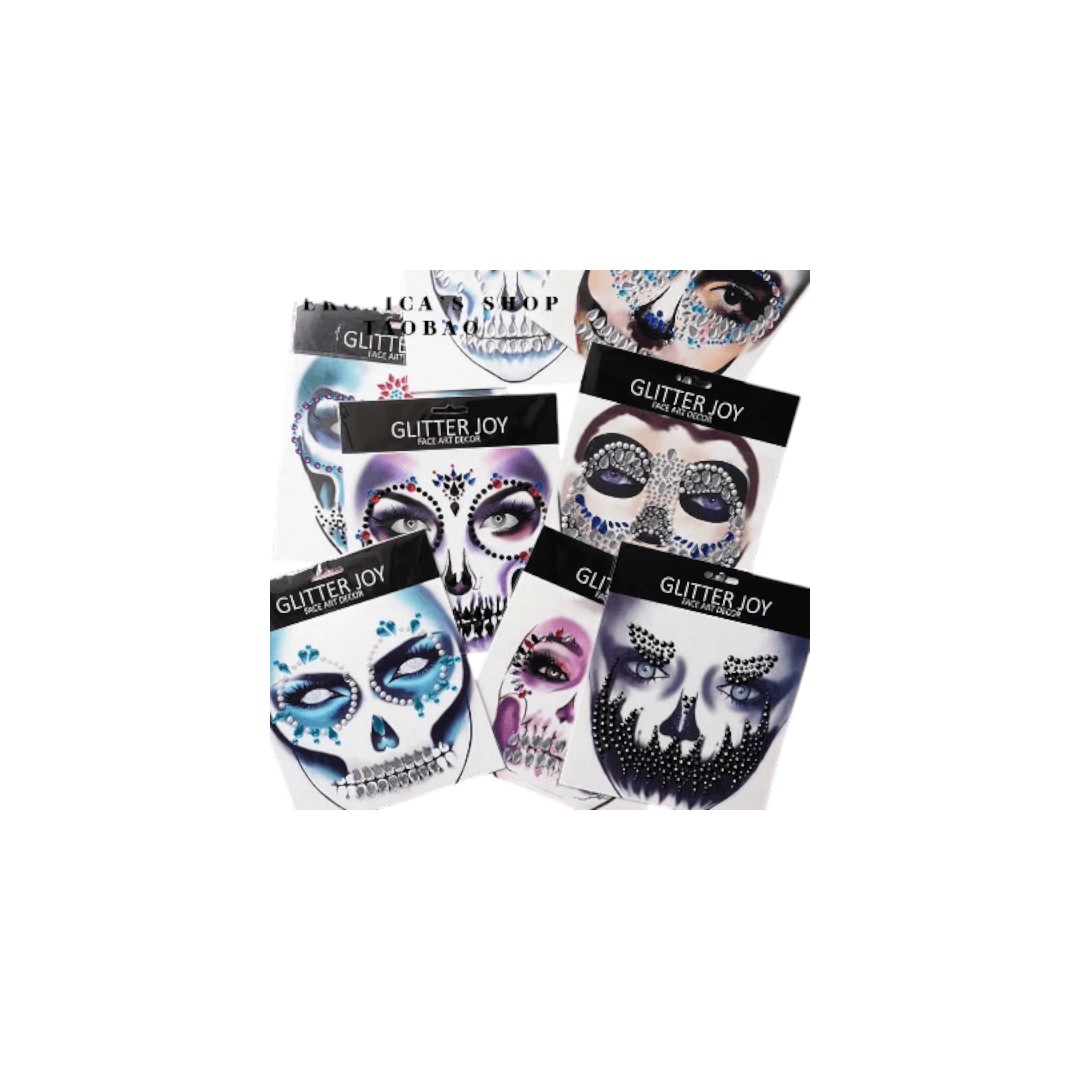מדבקות אבנים מעוצבות לפנים גולגולות על כארד מיקס 12 דגמים