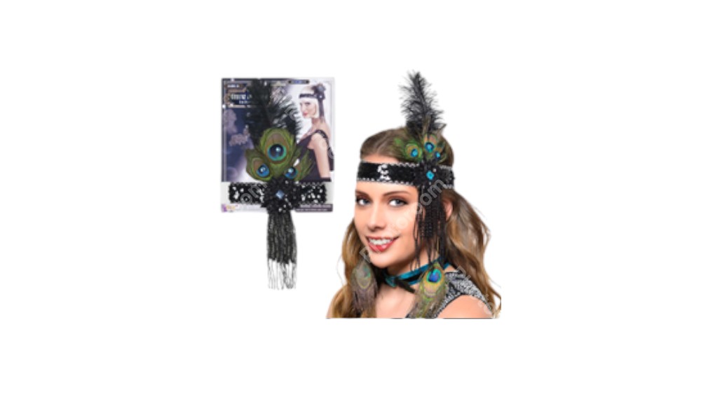 סרט ראש מעוצב נוצה צרלסטון עם יהלום על כארד מיקס צבעים שחור זהב וכסף