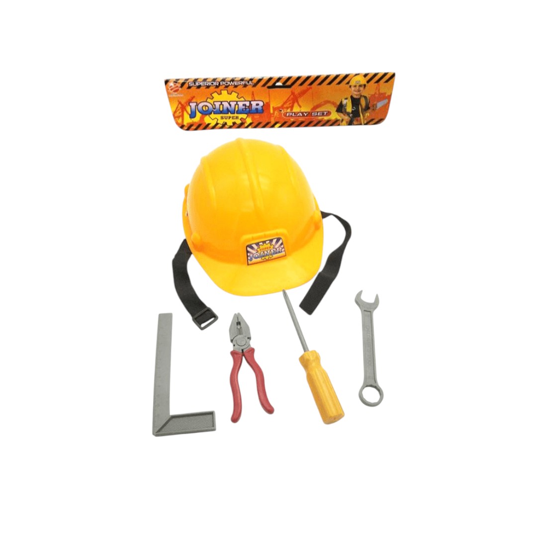 סט בנאי צהוב עם אביזרים בשקית PVC עם כארד
