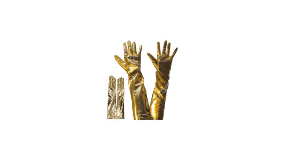 זוג כפפות ארוכות 38 ס"מ חלקות זהב לייקרה בשקית PVC עם כארד