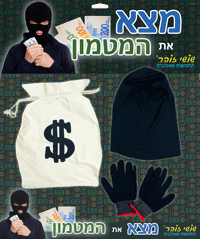 סט מצא את המטמון: שק דולר, כפפות וכובע גרב