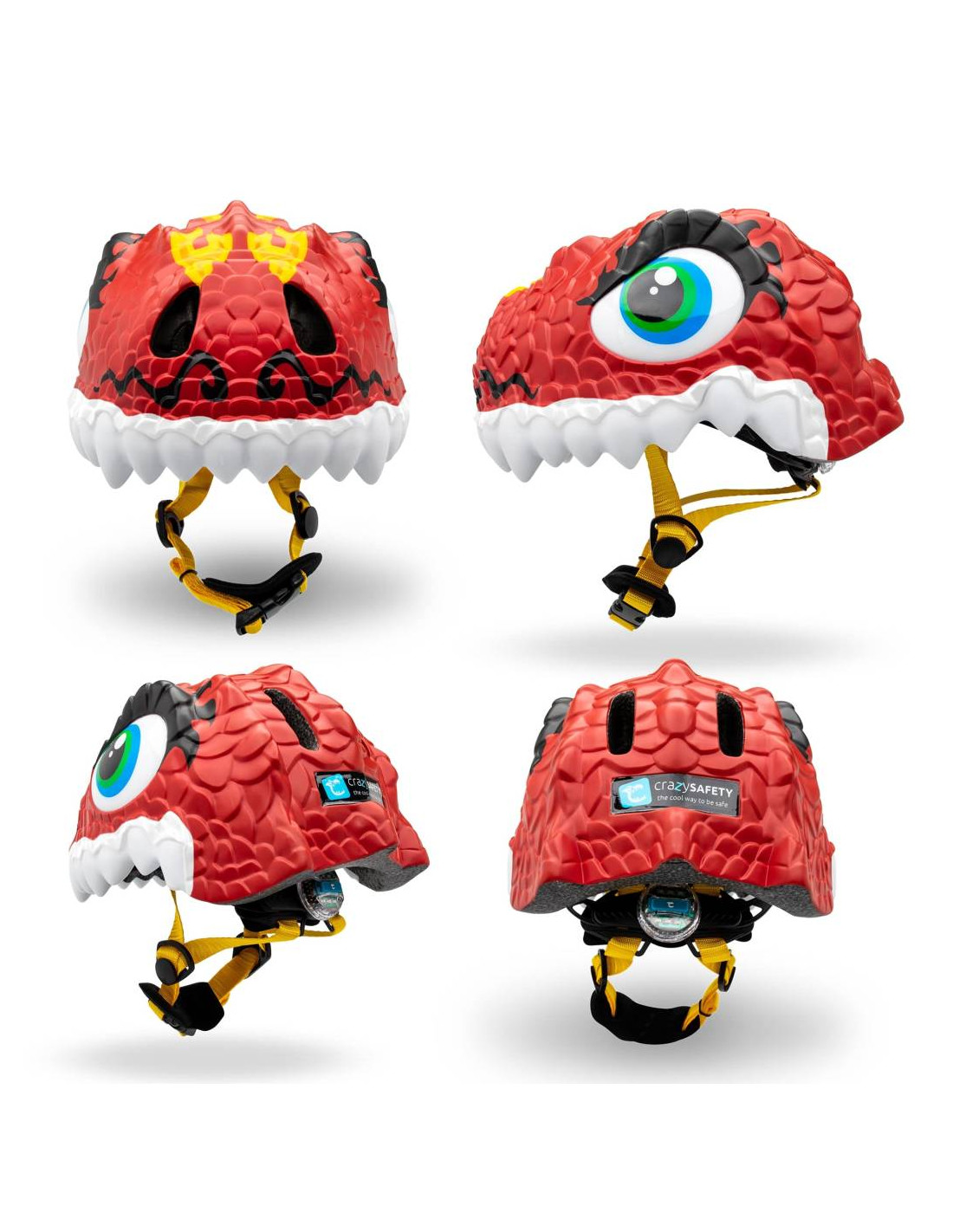 קסדת אופניים עם פנס מהבהב-דרקון צבע אדום