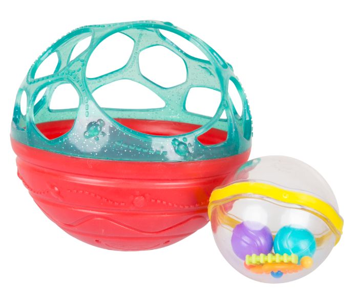 חורי האחיזה נוחים ומושלמים לאצבעות קטנות, ומעודדים את התינוק להשתמש בכישורים המוטוריים שלו כדי להרים, להחזיק ולנער את הכדור.