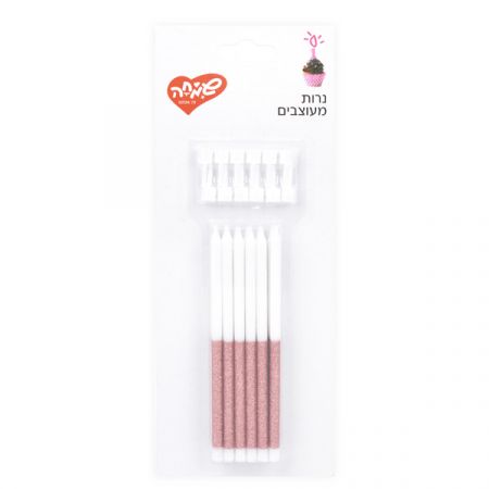 נרות לבנים ארוכים עם גליטר רוז גולד 6יח