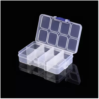 קופסת פלסטיק עם חלוקה נשלפת 8 תאים 6.6/10.5/2.5 ס"מ