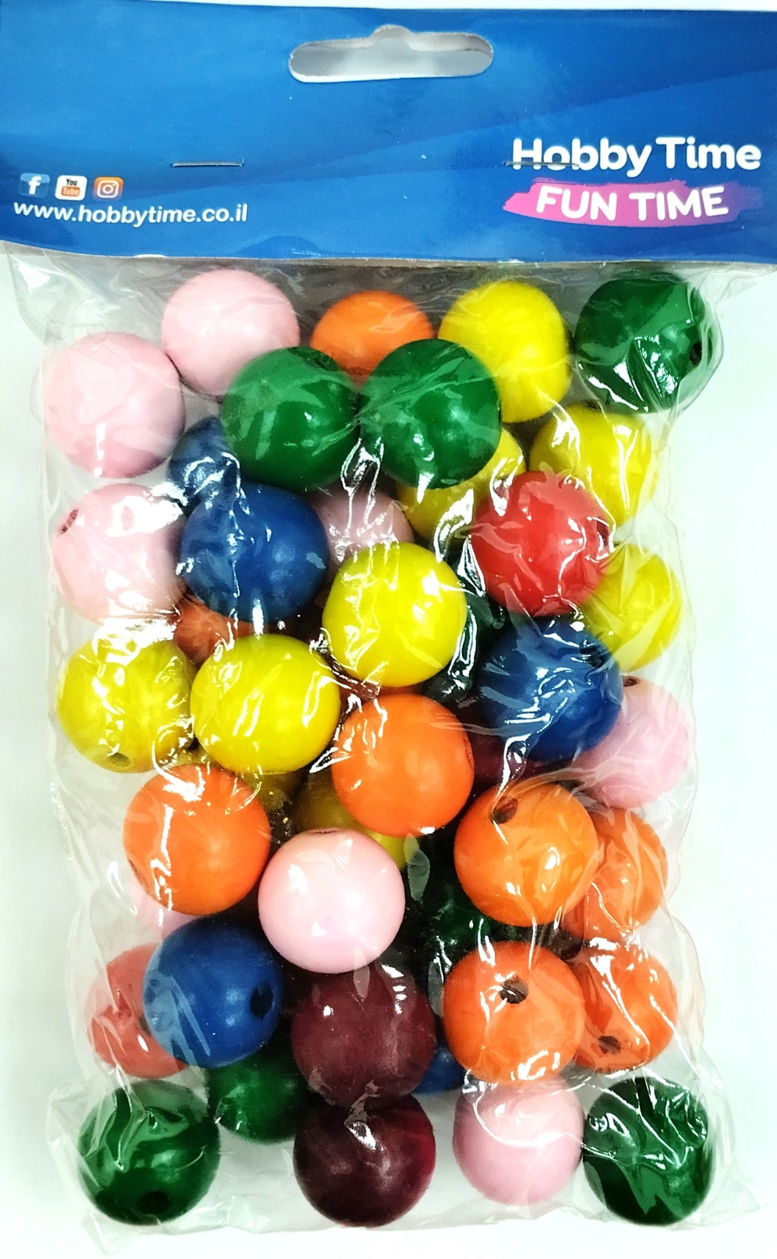 חרוזי עץ צבועים 2 ס"מ 45 יח'