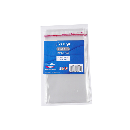 שקיות צלופן 25 מיקרון 7/10 ללא תליה 25 יח'